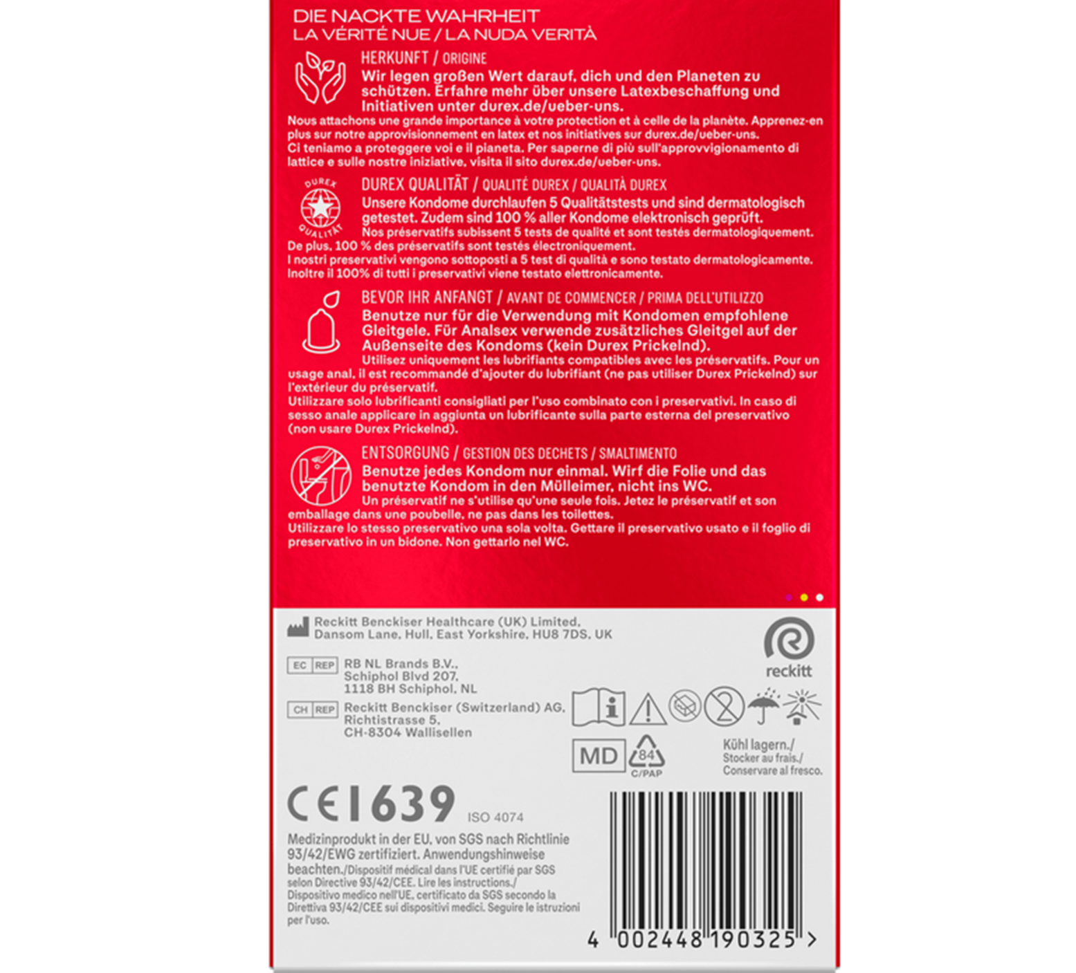halte die Folie beim Öffnen mit dem Durex Logo nach unten.