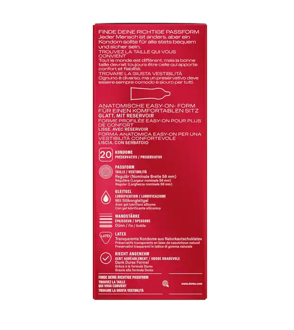 Durex Gefühlsecht Classic Kondome haben eine nominale Breite von 56 mm,