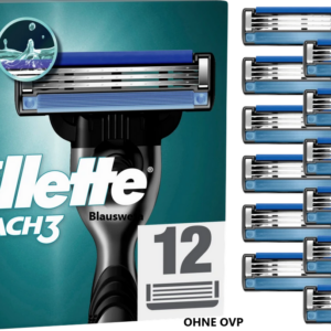 Die Gillette Mach3 Rasierklingen sorgen für eine klassisch-gründliche Rasur. Der 3-Klingen-Rasierer für Männer verfügt über einen verbesserten Gleitstreifen, der für zusätzliche Gleitfähigkeit sorgt. Der optimierte, schlanke Rasierergriff liegt gut in der Hand und ermöglicht eine gründliche Rasur mit Stil. Der Rasierer verfügt über Klingen, die stärker als Stahl sind und bis zu 15 angenehme Rasuren ermöglichen. Alle Mach3-Ersatzklingen passen auf alle Mach3-Rasierer-Griffe.